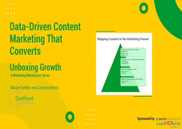 Join Outfront founders Nicole DeMeo and Jeanine Moss for this webinar hosted by LeadHERship Global and The C-Suite Network. In the past, content marketers put on their customer hat and matched what their audiences needed with what they wanted to tell them and came up with article ideas.
